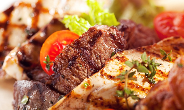 2 Lammkoteletts, Leber, Gyros, 1 Suzuk, dazu Reis und Pommes frites